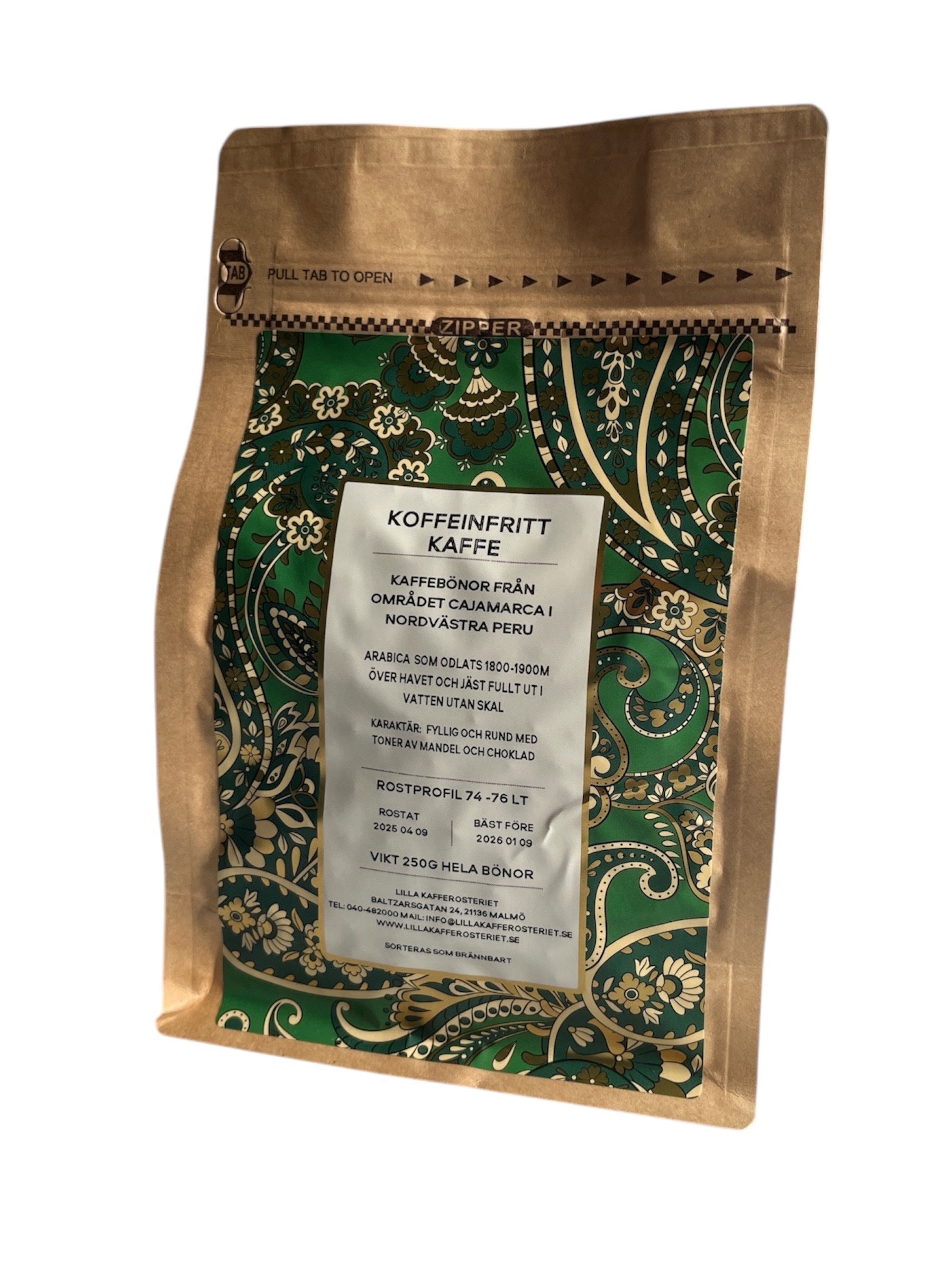 Koffeinfritt kaffe från Peru.