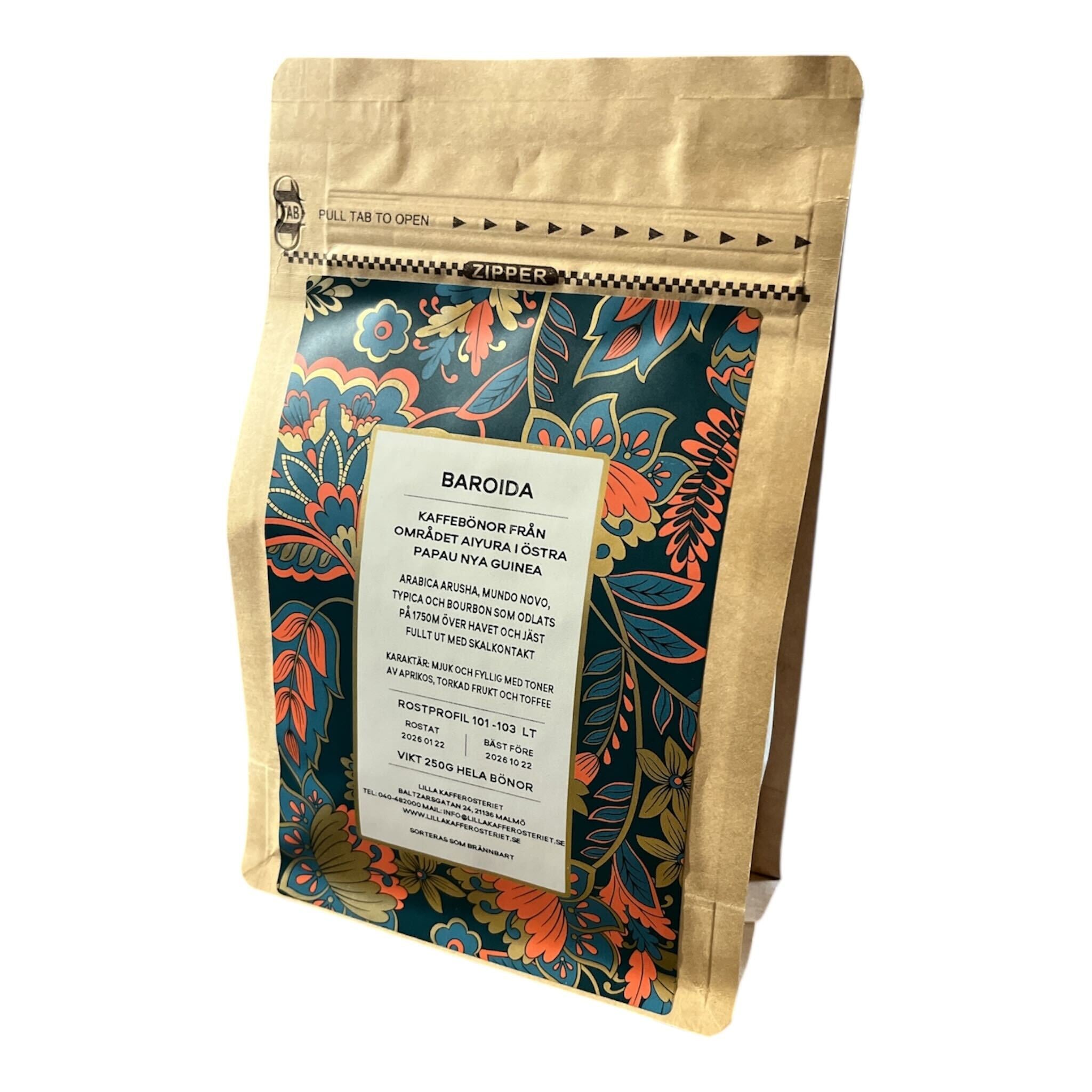 Baroida-gården producerar konsekvent kaffe av högsta kvalitet i Papua Nya Guinea. Efter sortering läggs körsbäret på upphöjda bäddar för att soltorka. Tack vare noggrann separering för kvalitetskontroll lyser den höga kvaliteten på denna gårds kaffe igenom med en fantastisk syra och munkänsla.