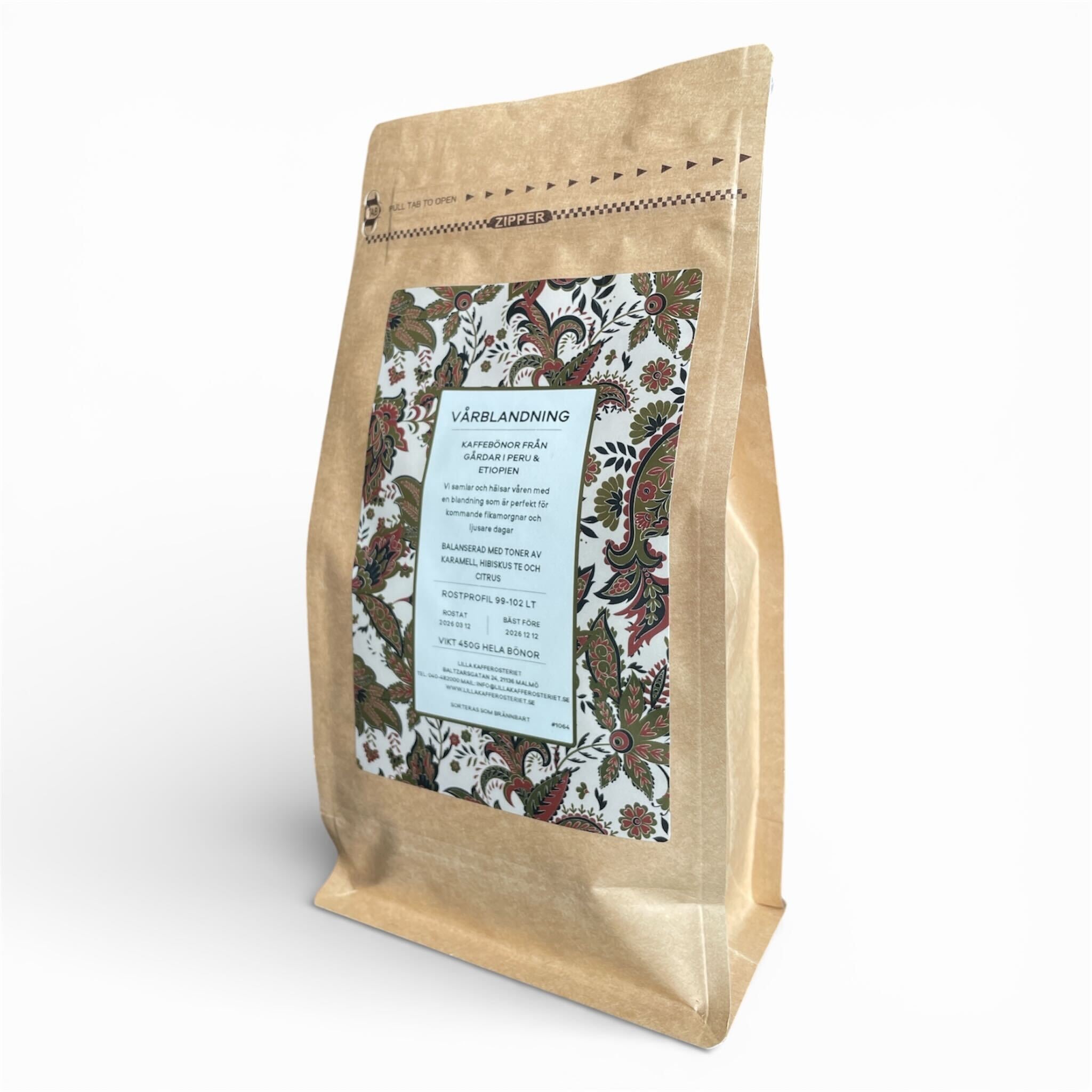 Vårblandning 450g 189 kr Hela kaffebönor Kvarnat till presskanna Kvarnat till filterbryggning Kvarnat till moka Lägg i varukorgen Årets vårblandning är här! Vi samlar och hälsar våren med en blandning som är perfekt för kommande fikamorgnar och ljusare dagar Balanserade med toner av karamell, hibiskus te och citrus Kaffebönor från gårdar i Peru och Etiopien Färg 99-102LT Kolla in fler produkter